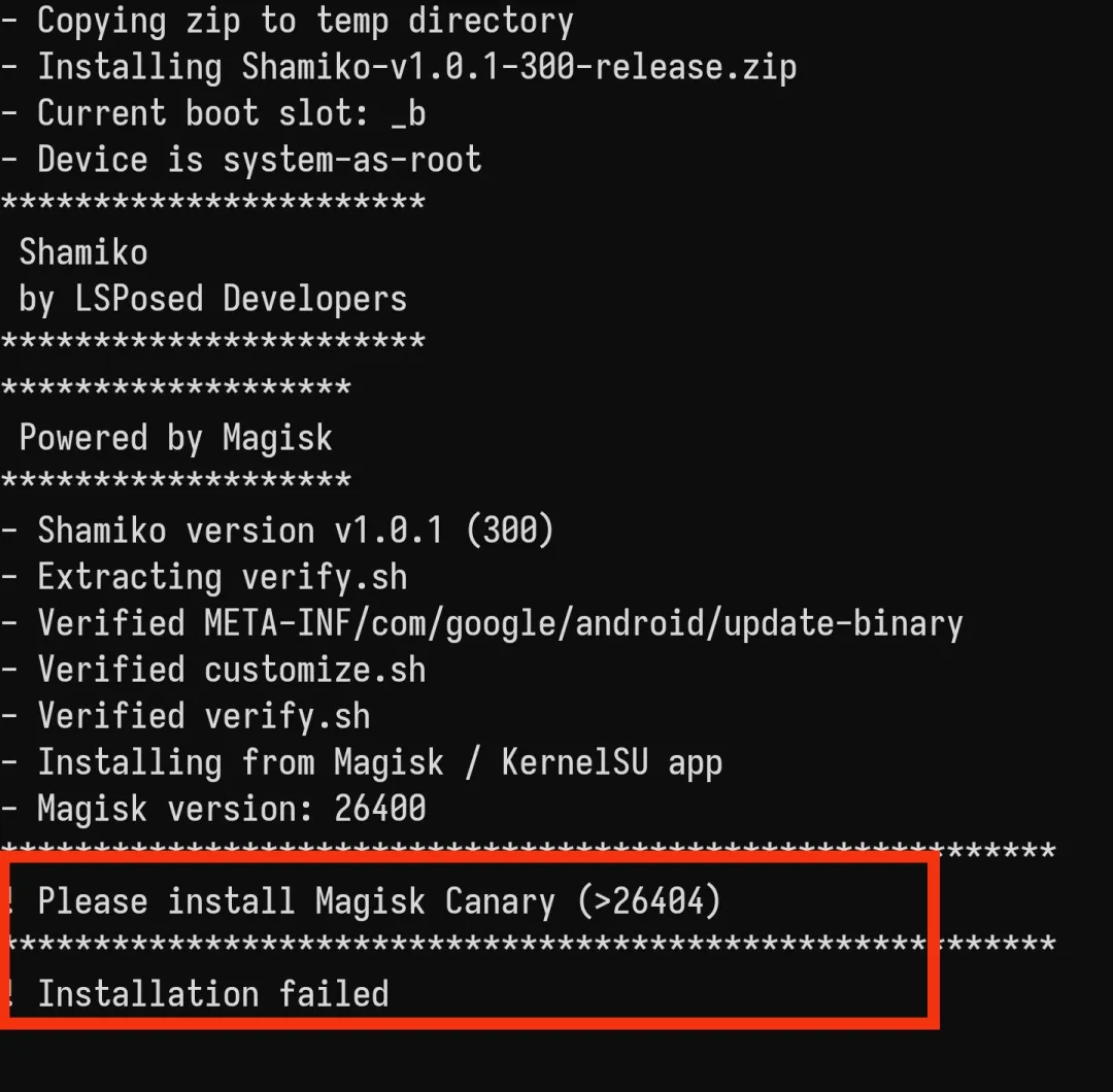 shamiko模块需要Magisk框架V26.3 或更高版本,KernelSU 10940 或更高版本,建议等 Magisk 更新正式版后再使用。