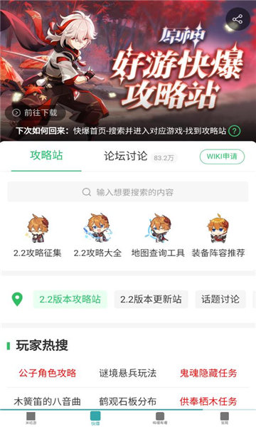 原神攻略站app是一款专门为原神玩家打造的游戏辅助工具,当我们在游戏里遇到难关过不去,或者不知道怎么培养角色,这时候原神攻略站就能派上大用场!因为提供了超级丰富的游戏攻略,从角色介绍、装备推荐到副本打法,样样俱全!