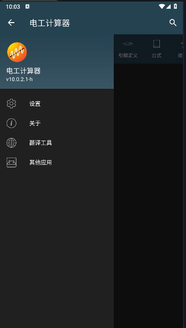 1.下载安装电工计算器后打开点击左上角的三条杠