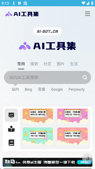 ai工具集手机版是一款功能强大的AI工具聚合软件,在这个ai工具集官方最新版上面汇聚了多种高效、实用的智能工具组件,只在为用户提供便捷的AI使用体验。无论是日常办公、学习还是生活娱乐,这款AI工具集导航官网版的软件都能满足你的需求,无论你是AI技术的新手还是资深爱好者都能找到适合你的AI工具!
