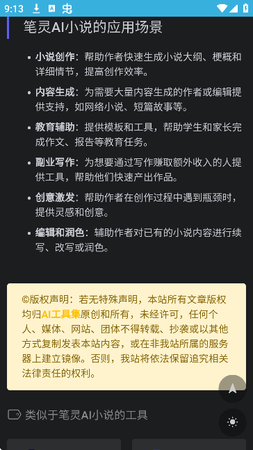 5、如【笔灵AI小说】,点击进入可查看官网地址、详细介绍。