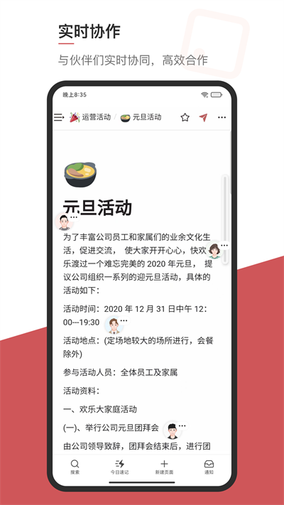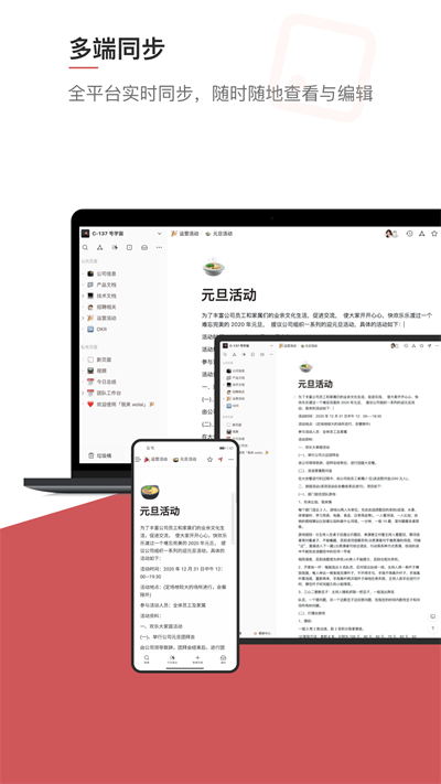2、多个人同时编辑一个文档时展示同一信息,—处笔记更新,全局会同步。