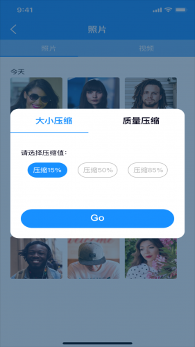1、浪花app操作简单的用户界面,自选视频压缩的优先级,大小及像素。