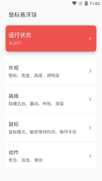 1.打开鼠标悬浮球app后可以看到运行状态是关闭的,点击运行状态