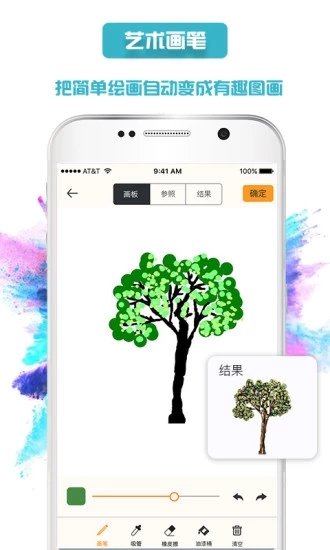 【艺术画笔】支持自由涂鸦与创意绘画,可生成神笔马良特效或金属人框效果。