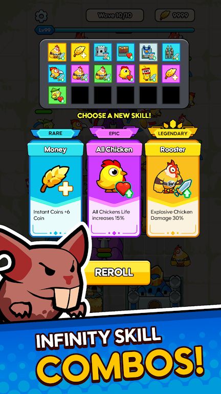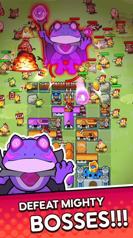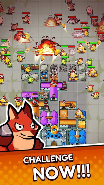 《小鸡防御》(ChickenDefensePuzzleRPG)是一款策略塔防类型的模拟战斗闯关游戏。游戏中玩家将作为一名养鸡的农场主,在这里你的鸡场正在被侵略者攻击,而你需要指挥你的战斗小鸡在各种敌人的围攻之下守卫自己的土地。游戏玩法简单,主要考验玩家策略,通过合并相同的鸡英雄玩家就能够获得更勇猛的鸡以此来不断变强直至打败BOSS。感兴趣的话欢迎在本站进行下载游玩!