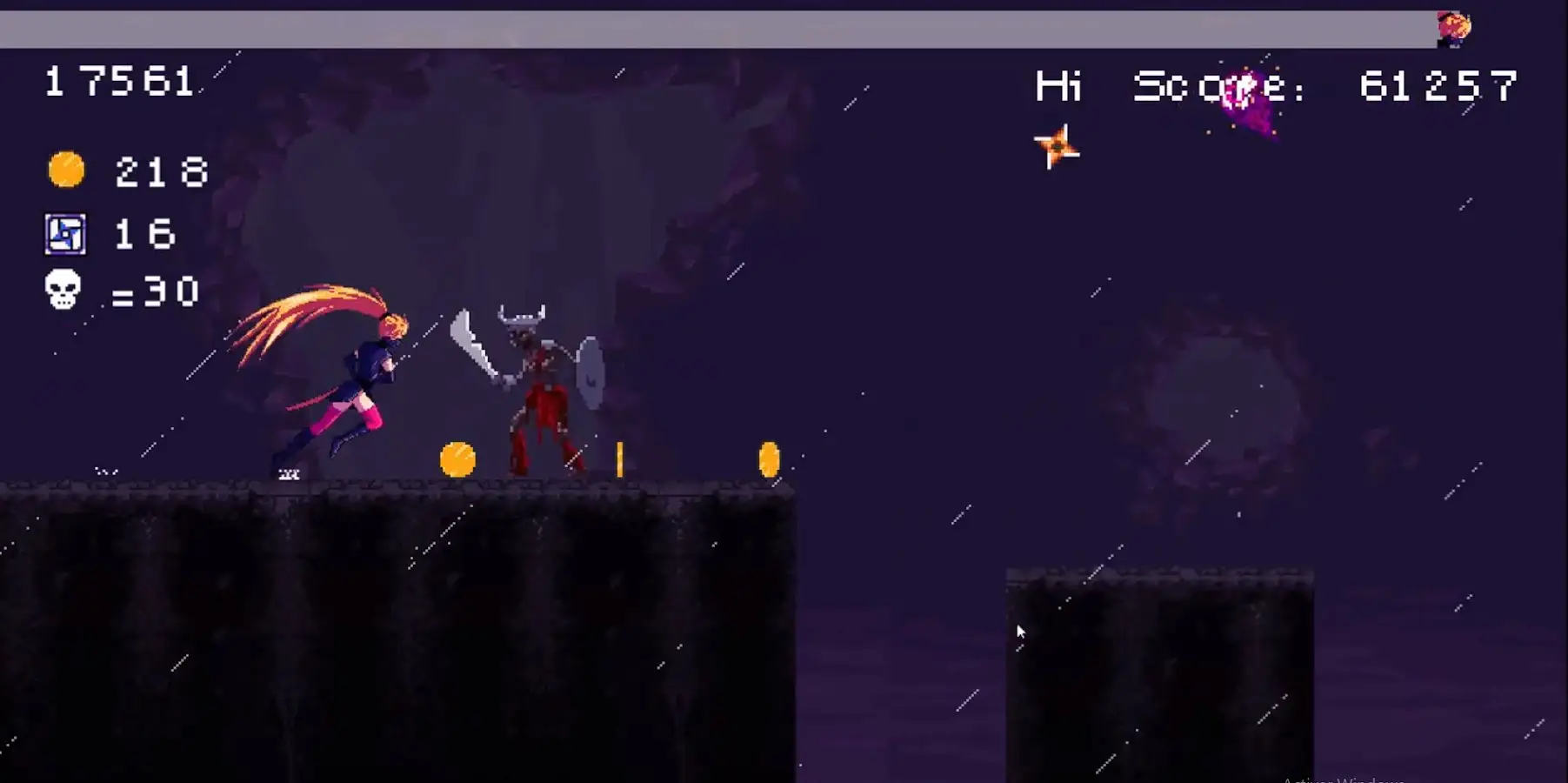 《女忍者詹》是一款快节奏的动作闯关冒险战斗游戏,在这里你将控制强大的女忍者在各种关卡之中斩杀仇敌!游戏关卡丰富,难度逐关上升,在这里你需要面对多样的陷阱与难缠的敌人,通过收集金币与打败敌人来证明你的真正实力。游戏玩法简单有趣,通过控制角色的移动与攻击来进行跳跃杀敌即可完成难关,主要考验玩家的反应能力。感兴趣的话欢迎在本站进行下载游玩!