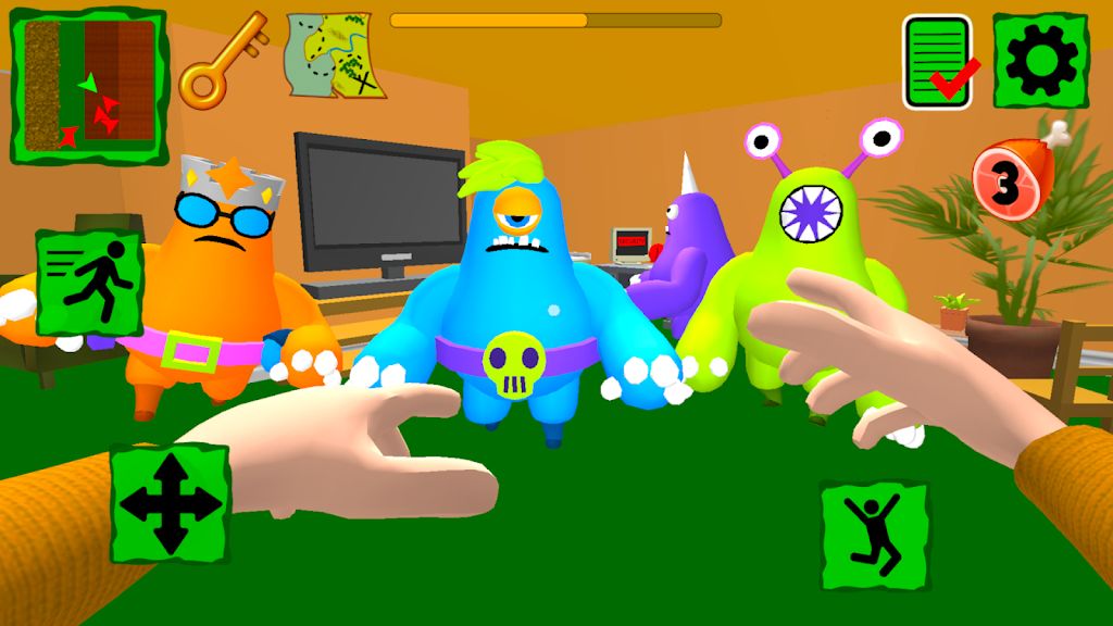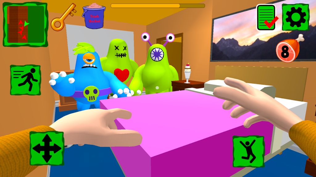 怪物家族在房子里巡逻!《怪物邻居家庭住宅》(MonsterNeighborFamilyHouse)中,如果怪物看到你,他们会追你并抓住你!向你的新对手问好,逃脱并完成所有任务。用物体打破窗户,从窗户爬进房子!要执行所有级别,您需要寻找各种物品。收集并食用食物以恢复耐力。投掷物品以击晕邻居的敌人。逃离并躲藏在床底下的可怕怪物家庭!