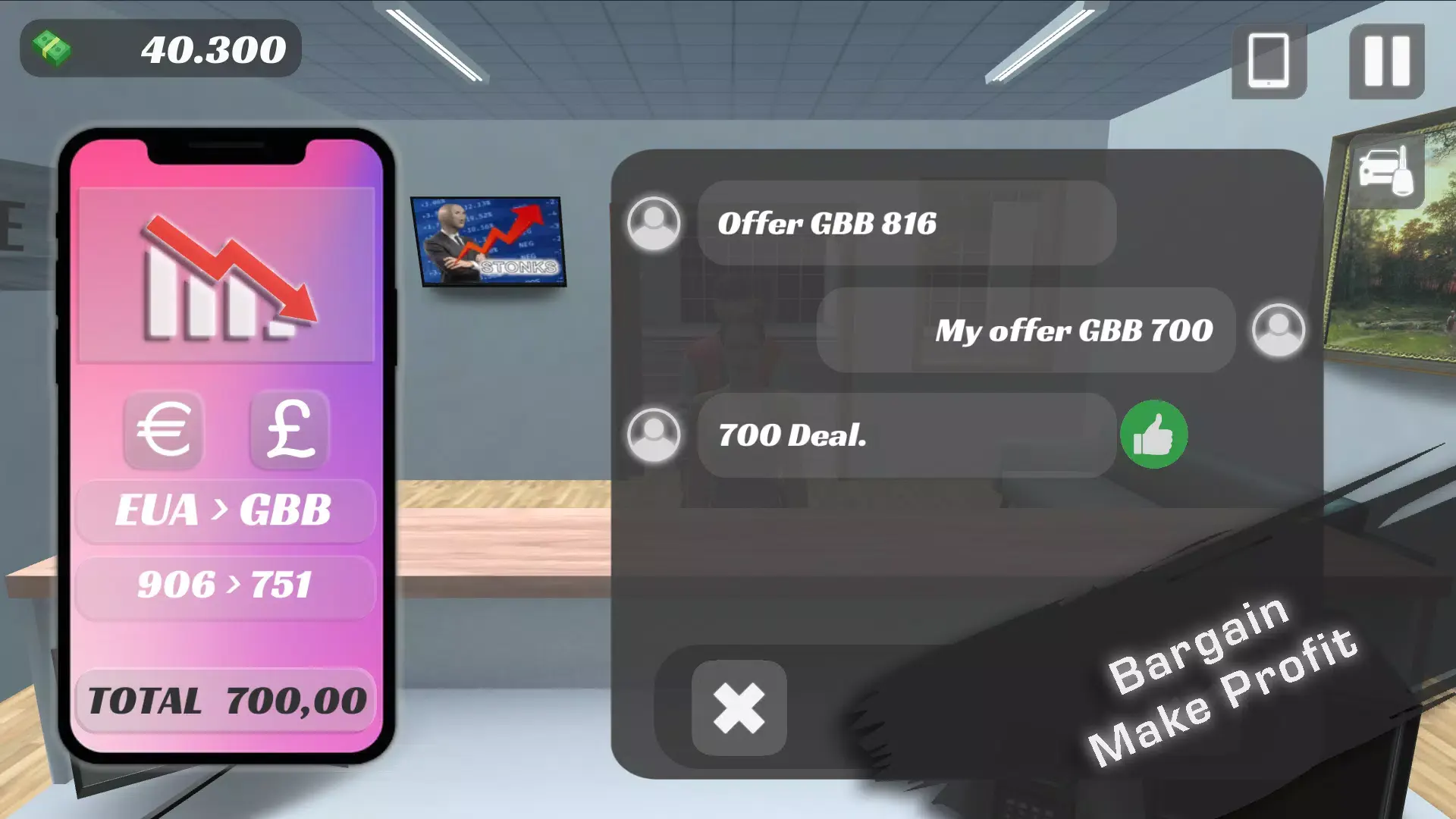 《商业帝国大亨》是一款令人充满激情的模拟经营店铺手游,在这里玩家将作为一名柜员开启你的传奇人生!游戏中玩家将从交易所开始做起,你需要持续经营银行商店,使用合适的谈判策略将其最终打造成一个金融帝国。游戏模拟现实生活中的种种现实交易,在这里玩家可以持续升级商店跟踪汇率,并做出战略决策。游戏中还有着骗子的存在,让游戏可玩性来到一个新高度。感兴趣的话欢迎在本站进行下载游玩!