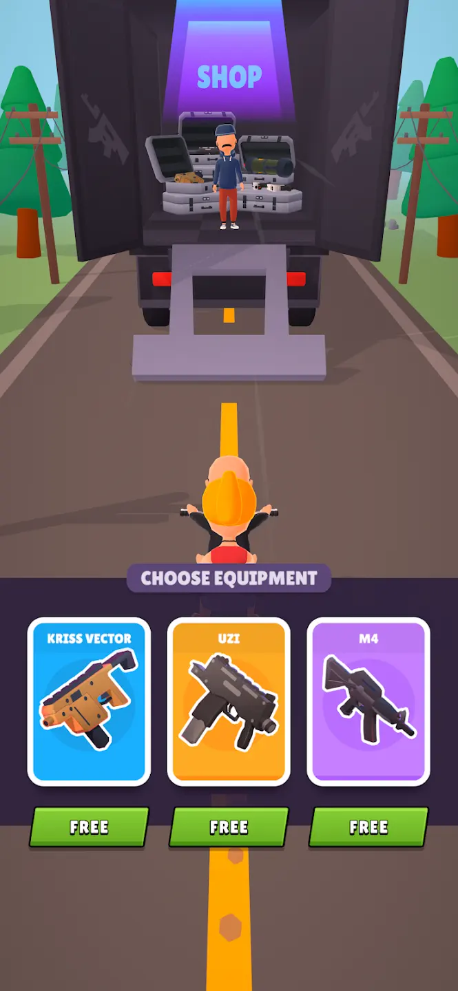 《公路之战》游戏操作方法极简,两指就能操作,左右滑动做出转弯的动作,上下滑动跳跃卧倒躲避障碍物,左右晃动设备收集金币,虽然看似简单但是真正上手操作时眼睛反应过来了但是手没反应过来,所以眼和手都要配合好,这个应该是没有终点的,跑的越远难度越大,而在游戏中收集的金币可以用在商店购买能力、道具和角色。