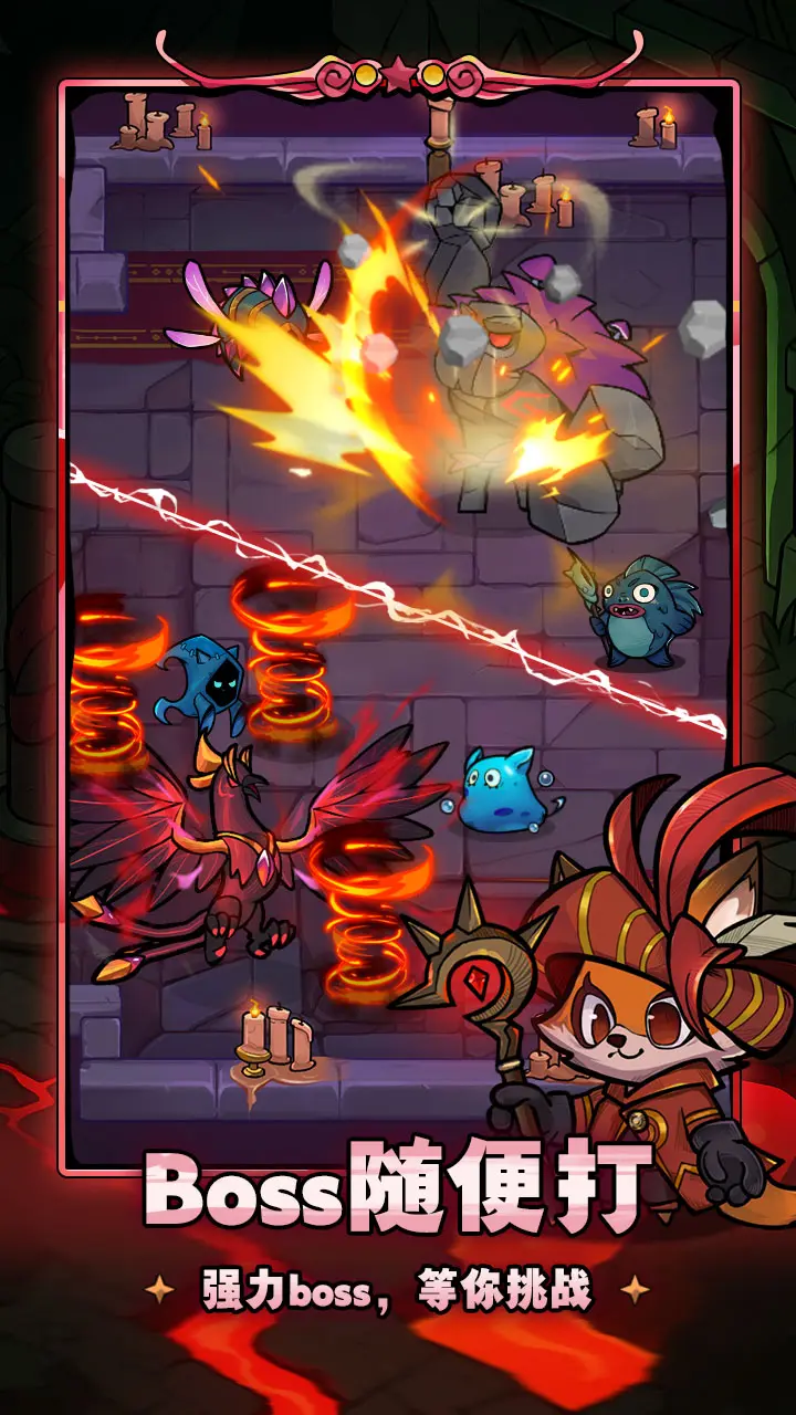 Boss与怪物伤害温和,拒绝秒杀挫败。关卡难度平滑成长,失败后可不断重试,肉鸽体验轻松愉快,总能通关!