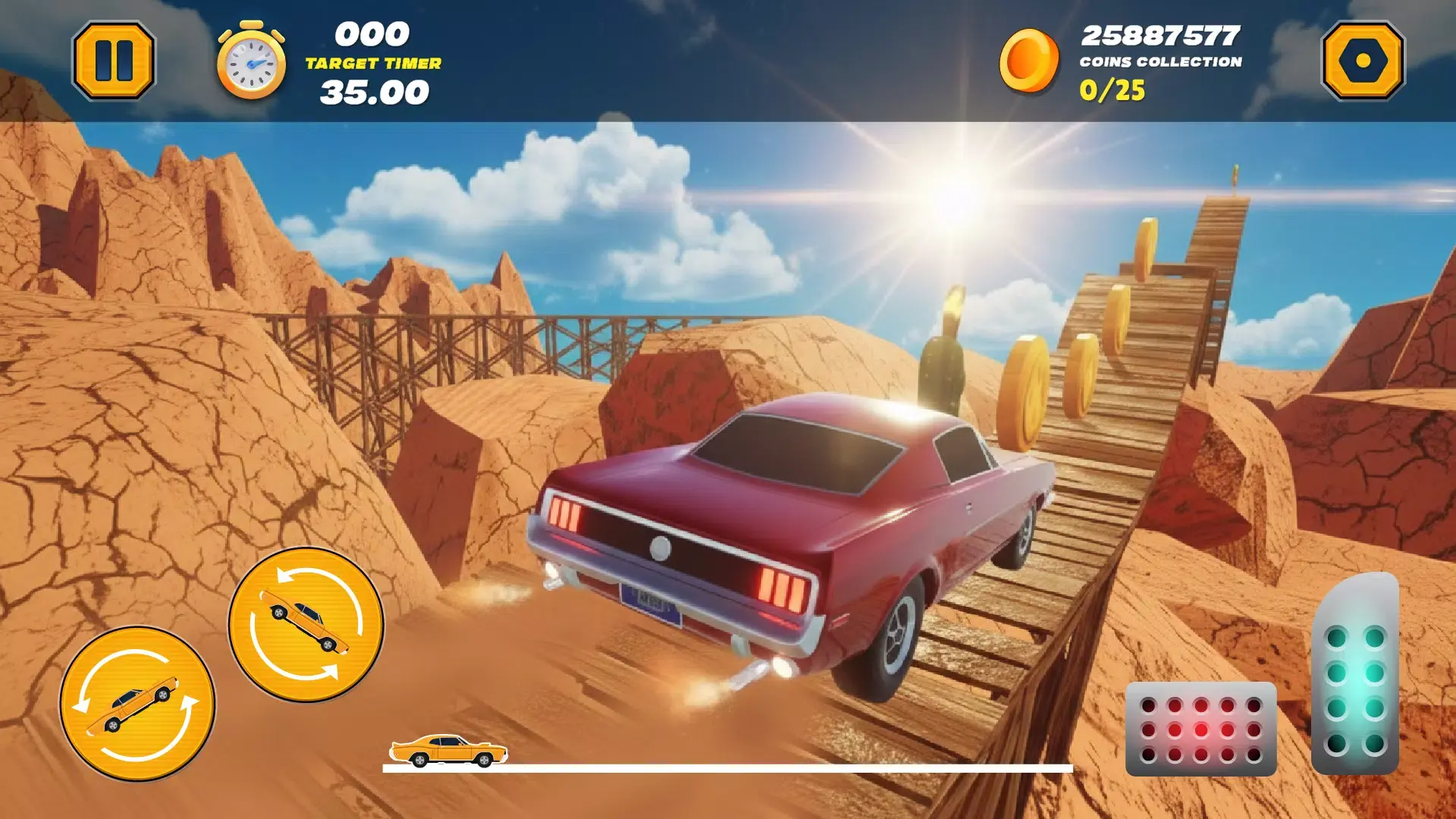 嘿!你准备好把你的疯狂汽车漂浮在天空高的环境中建造的不可能的轨道上吗?如果你的答案是肯定的,那么你就可以玩《不可能的汽车特技》这个最令人上瘾的汽车特技游戏时提高你的汽车特技技能。在可怕的高度不可能的轨道上漂移您的跑车,并避开您将面临的所有障碍。通过按下每个不可能的比赛任务上给出的电源按钮来提高您的赛车速度。