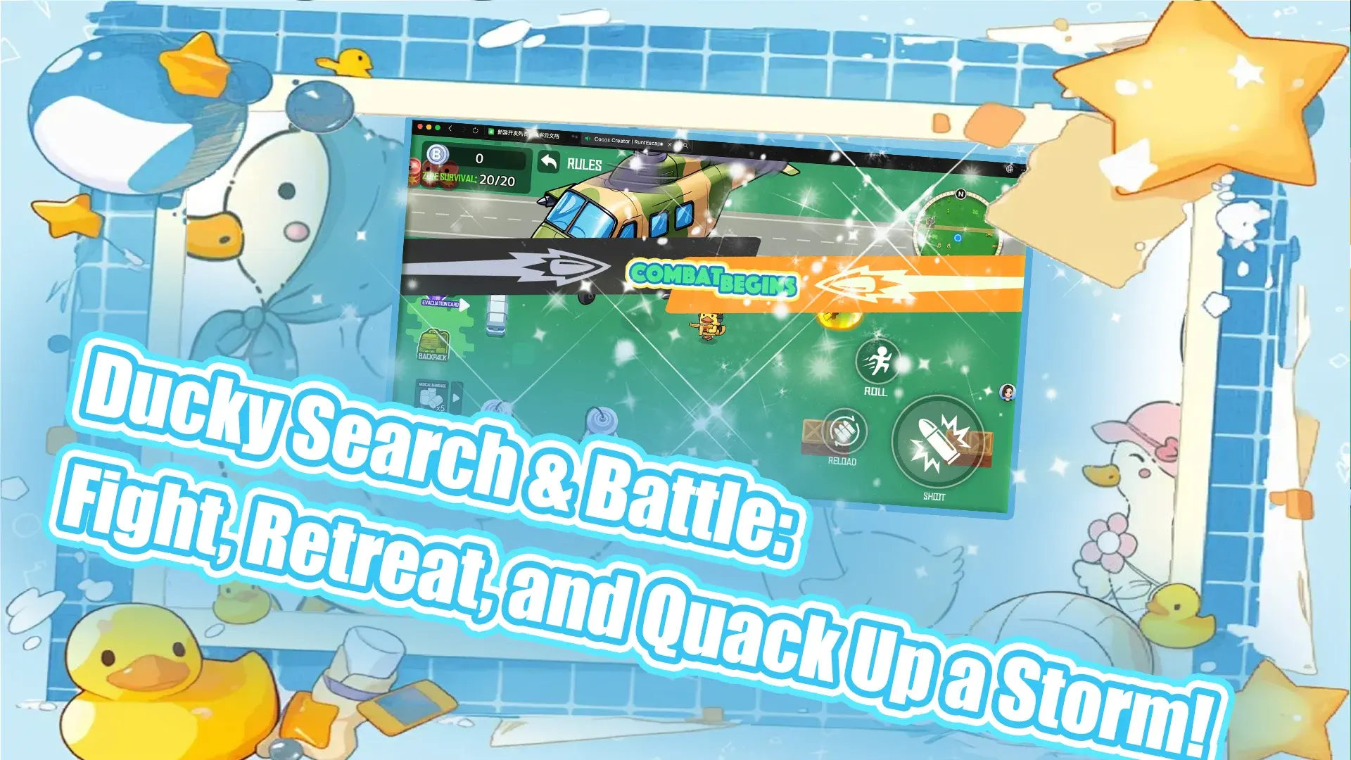 《逃亡大乱斗》是一款俯视角射击冒险探索游戏。游戏中玩家将扮演各种可爱的小鸭子在广阔的战场之中收集物资并与敌人开战!游戏玩法有趣,采用当下最热门的搜打撤模式,在这里玩家需要寻找物资补给,并适当的进行战术性撤退或打劫对手装备,成为战场上最后的幸存者。游戏采用可爱的卡通风格,搭配以硬核的玩法模式,带给玩家们爽快的战斗体验。感兴趣的话欢迎在本站进行下载游玩!