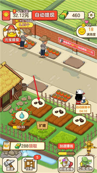 3、种下作物后,等待一定的时间就会成熟,点击即可收获,并且会自动上架到地摊上。