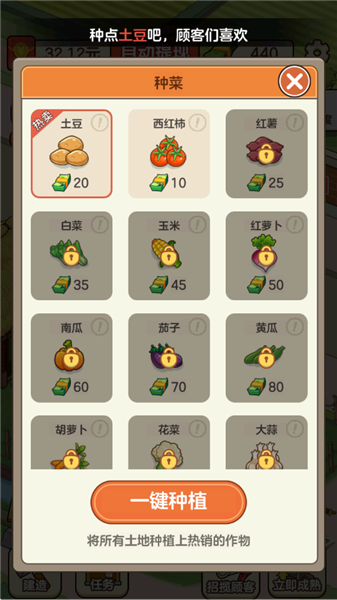 2、打开种植列表后,可以自由选择作物,我们可以去挑选热卖产品种植。
