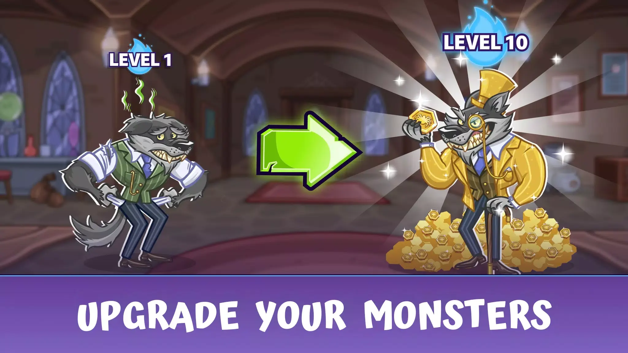 《怪物闲置大亨》是一款策略放置类的怪物模拟经营游戏。在这里你将成为怪物王国的最终统治者,你需要策划各种计谋来将鬼魂、吸血鬼、狼人和其他令人毛骨悚然的生物培养成才,并让他们最终统治成为国家的普通居民。游戏中玩家将从一家小小的怪物商店开始发展,使用各种方便地自动化装置让你成为最富有的怪物放置大亨。感兴趣的话欢迎在本站进行下载游玩!