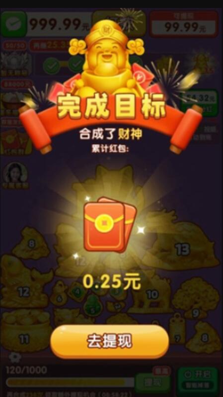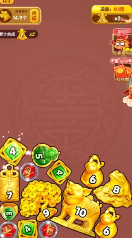 1、非常知性有趣的合成游戏,最高级别的项目是财神,合成后可以获得额外的惊喜奖励。